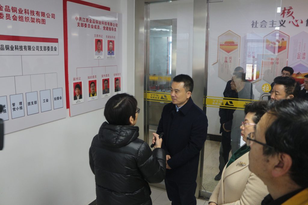 2022年2月15日(元宵节),抚州市委书记夏文勇一行深入抚州国家高新技术产业园区江西EVO视讯官网铜业科技有限公司调研公司非公党组织党建工作在企业发展、百亿目标达成、科研活动中所取得的成果,并与公司党支部负责干部进行了深入交流。他强调,各部门要全面推进复工复产,发挥非公党组织在民营企业中的引领作用,促进企业发展,引领思想方向,确保实现好的开局,再创新的辉煌。高新区党工委领导陪同调研。